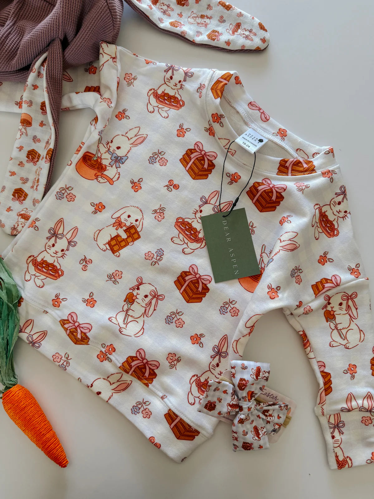 Hop into spring with our crewneck! Made with soft french terry fabric, this cozy crewneck is perfect for pairing with our bunny hoodies or leggings. Stay comfy and stylish all season long.