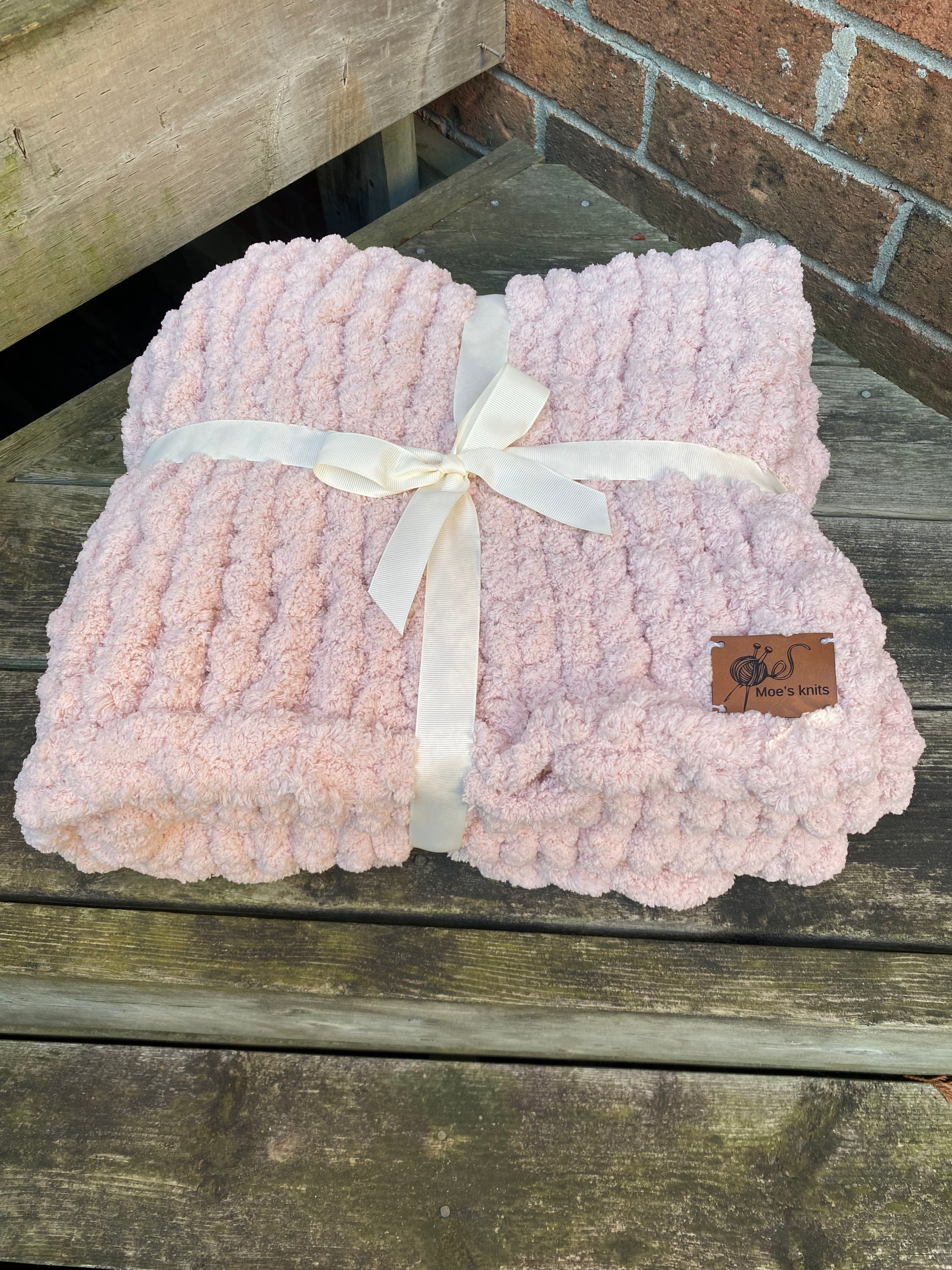 Wrap your little one in warmth and comfort with this cozy hand knit throw.