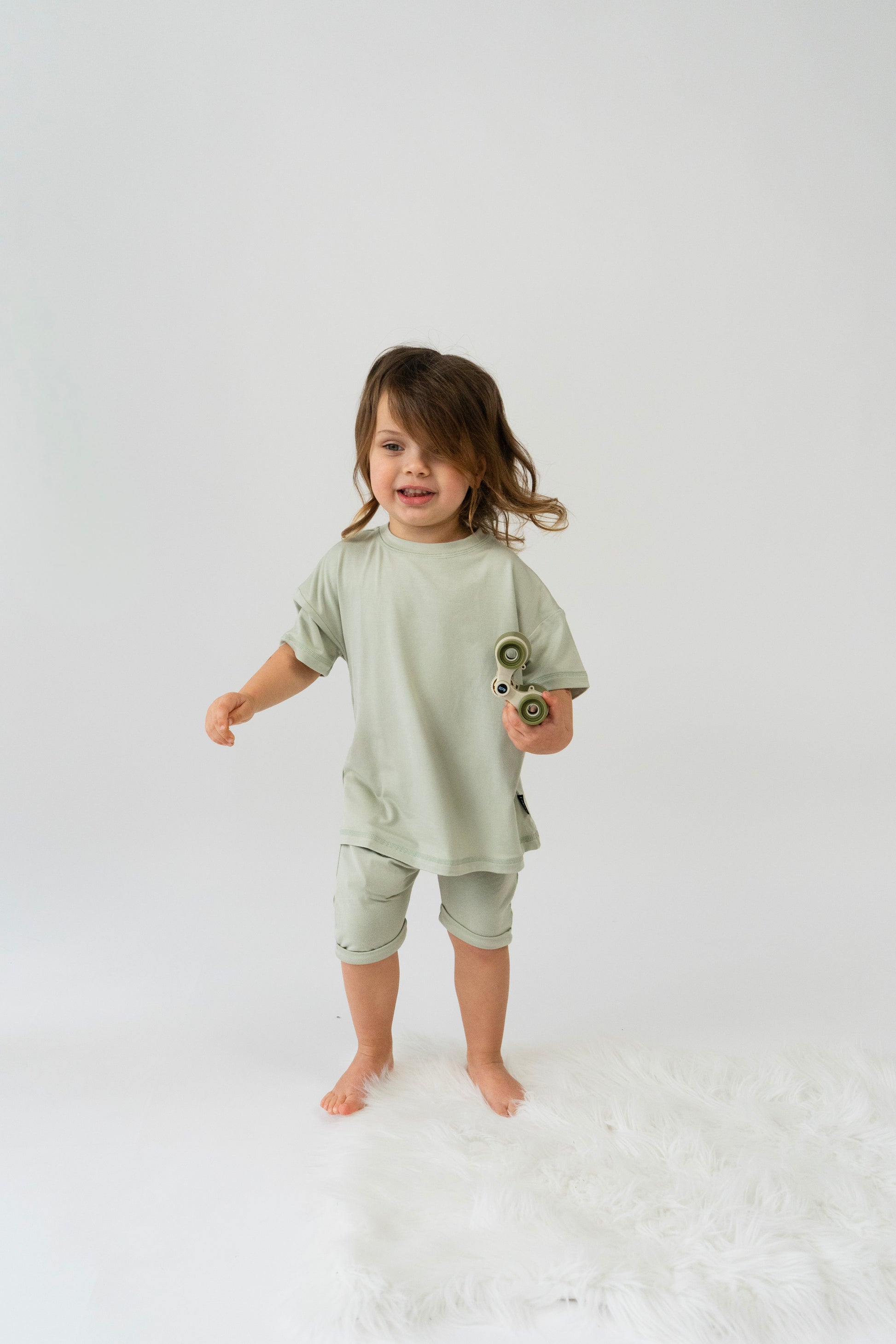 Elastic waisted shorts feature a drop crotch harem style and front pockets. An elastic waistband makes these easy to dress busy toddlers.